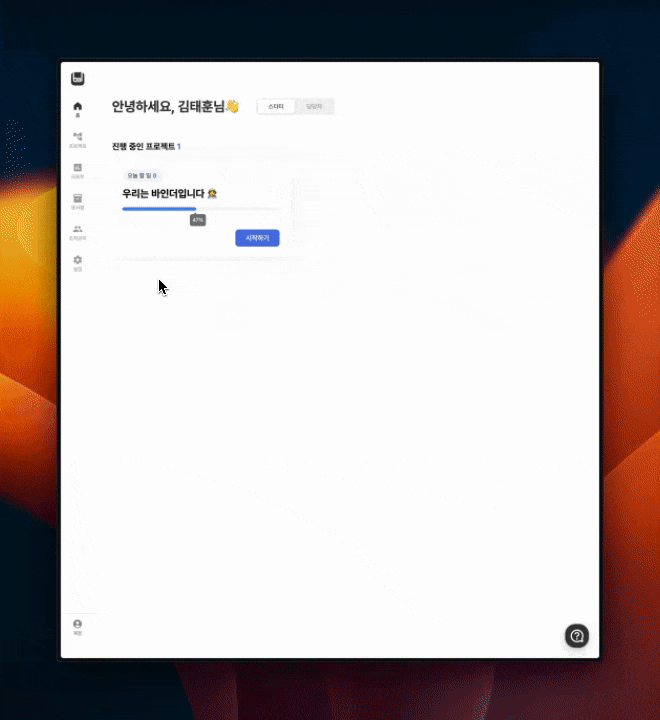 좌측 하단에 있는 [설정] 버튼을 누른 뒤, [업무 설정] 탭을 선택합니다.
