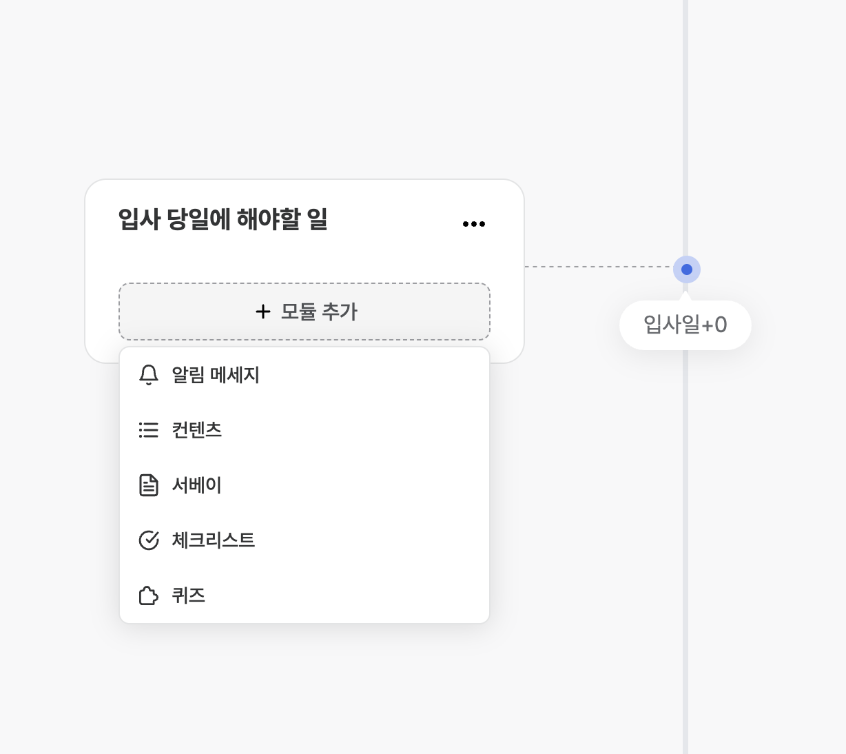시퀀스에서 우측의 경우 온보딩 담당자들의 할 일을 구성할 수 있다고 설명드렸습니다. 담당자 분들의 할 일을 규정할 때는 직접 담당자를 지정할 수가 있습니다.3.1 모듈 (담당자) - 특정 역할 부여