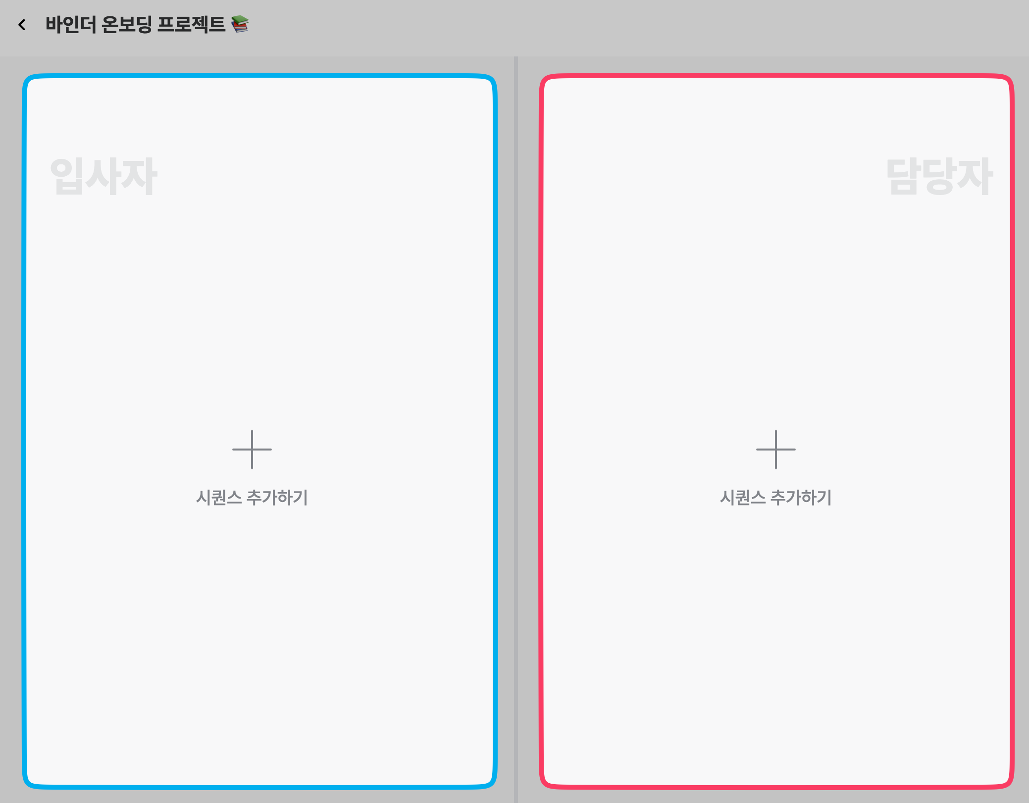 좌측은 신규 입사자들의 시퀀스를 구성할 수 있으며, 우측은 온보딩 담당자들의 시퀀스를 구성할 수 있습니다.